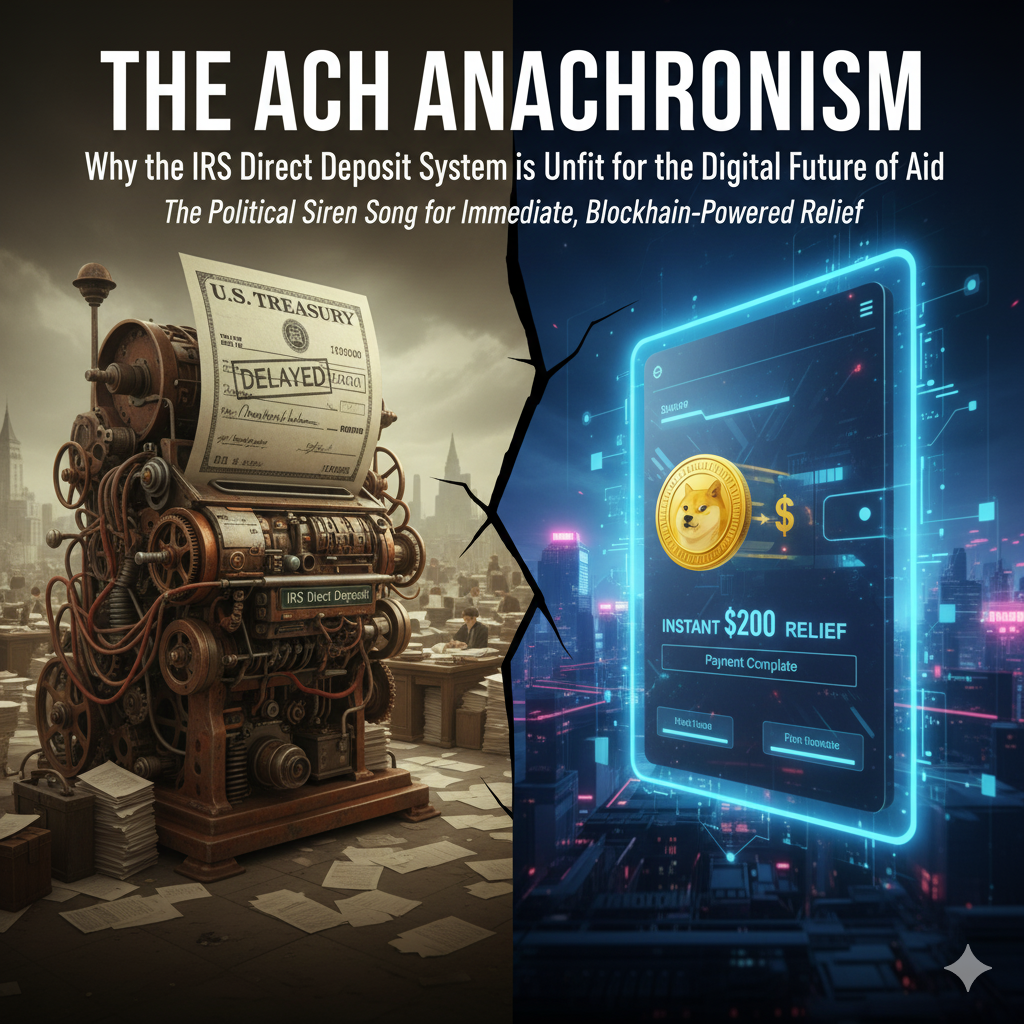 The political siren song for immediate, blockchain-powered relief—however hyperbolic the idea of doge checks may be—is forcing a reckoning with the ageing IRS direct deposit infrastructure, a system ill-equipped for instant, mass-scale payments.